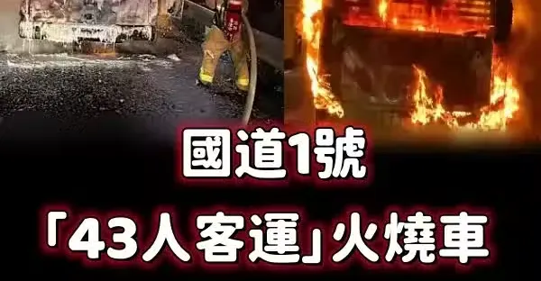 國道1號「43人客運」火燒車 火海瞬間吞沒車體...