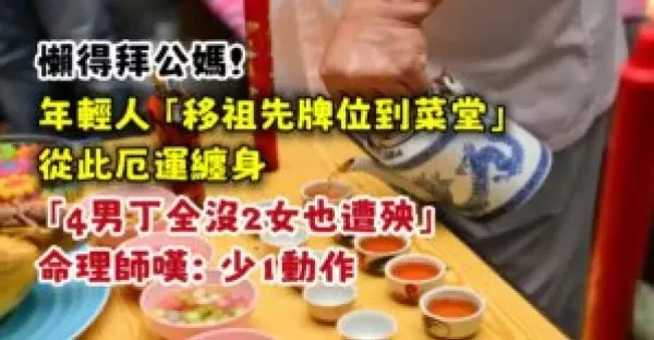 懶得拜公媽!年輕人「移祖先牌位到菜堂」從此厄運纏身 「4男丁全沒2女也遭殃...」命理師嘆:少1動作!