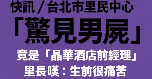 剛剛台北市裡民中心「驚見男屍」竟是「晶華酒店前經理」里長嘆:生前很痛苦