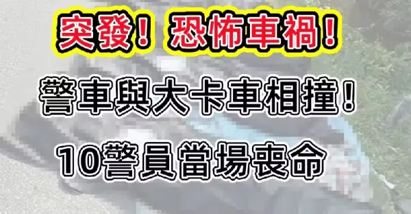 突發!恐怖車禍!警車與大卡車相撞! 10警員當場喪命