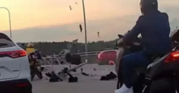 亡命瞬間曝光!連人帶車遭貨櫃車輪輾過,當場爆頭死亡!20多人目睹不敢撇頭