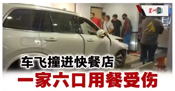 大件事!車飛撞進快餐店,一家6口嚴重受傷