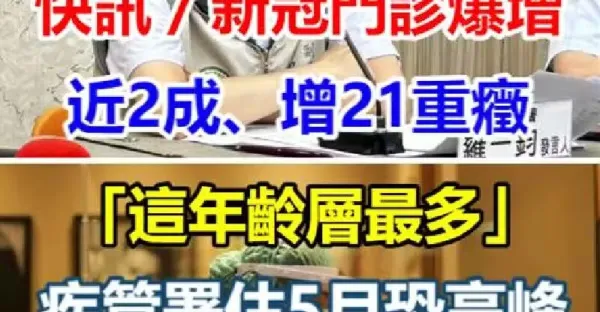 新冠門診爆增近2成、增21重症「這年齡層最多」衛生部估5月恐高峰