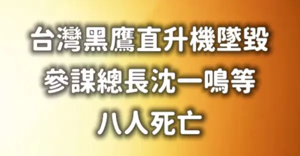 快訊/台灣黑鷹直升機墜毀,參謀總長沈一鳴等八人死亡!