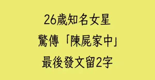 26歲知名女星驚傳「陳屍家中」最後發文留2字!
