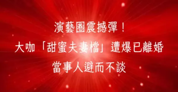 演藝圈震撼彈!大咖「甜蜜夫妻檔」遭爆已離婚 當事人避而不談!