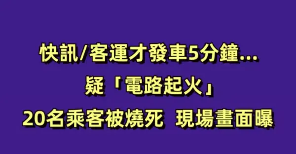 快訊/客運才發車5分鐘...疑「電路起火」20名乘客被燒死 現場畫面曝!