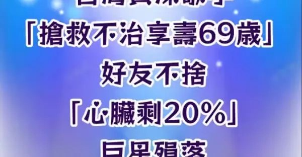 台灣資深歌手「搶救不治享壽69歲」 好友不舍「心臟剩20%」巨星殞落