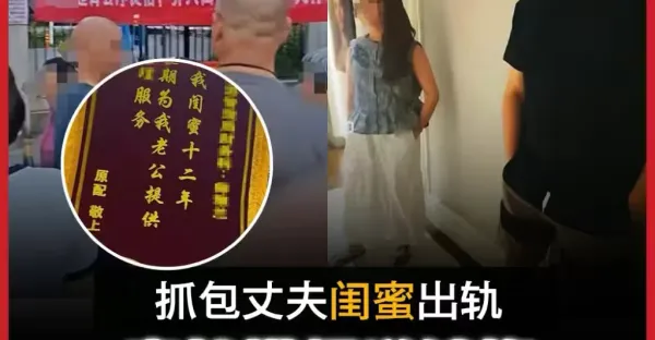 抓包閨蜜與丈夫出軌 妻子掛橫幅諷刺 感謝「照顧老公五年」