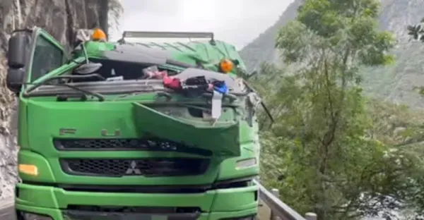 台八線驚險自撞!24歲男轉彎打滑撞山壁 險落20M河谷