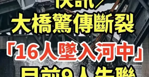 快訊/大橋驚傳斷裂「16人墜入河中」! 目前9人失聯「死亡人數曝光」