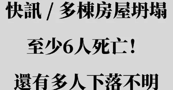 快訊/多棟房屋坍塌,至少6人死亡!還有多人下落不明