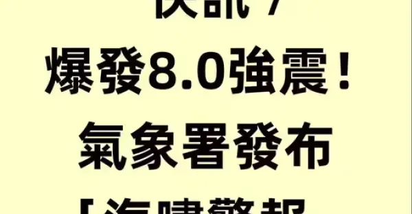 快訊/爆發8.0強震!氣象署發布「海嘯警報!」