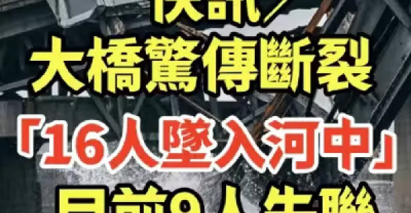 快訊/大橋驚傳斷裂「16人墜入河中」!目前9人失聯「死亡人數曝光!」