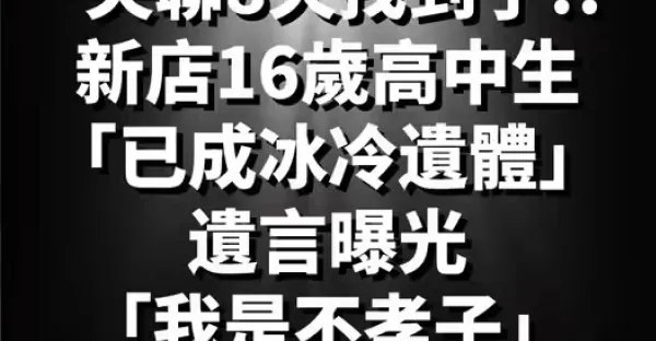 失聯8天找到了!新店16歲高中生「已成冰冷遺體」 遺言曝光「我是不孝子!」