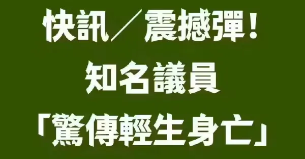 快訊/震撼彈!知名議員「驚傳輕生身亡!」