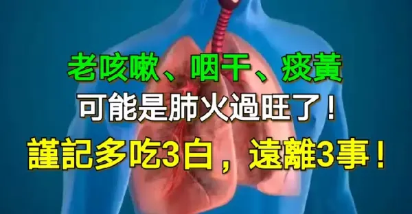 老咳嗽、咽干、痰黃,可能是肺火過旺了!謹記多吃3白,遠離3事!