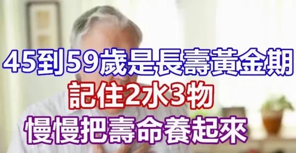 「45到59歲」是長壽黃金期!記住「2水3物」慢慢把壽命養起來 少做4件事「減緩衰老」