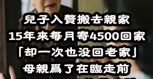 兒子入贅搬去親家!!15年來每月寄4500回家「卻一次也沒回老家」...母親為了在臨走前見兒子一面,拖著病.體上門探望「敲開門她淚如雨下」