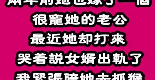 女兒是獨生女,從小要什麼有什麼,2年前她也嫁了一個「很寵她的好老公」 最近她卻打來「哭著說女婿出軌了」 我緊張陪她去抓猴「闖進門看到是誰後」我轉身賞女兒一巴掌