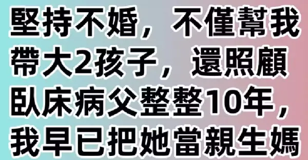 母親過世後,阿姨跟父親「同居相伴18年」堅持不婚,不僅幫我帶大2孩子,還照顧臥床病父整整10年,我早已把她當親生媽媽,她卻在臨終前「做了一件事」...頓時淚如雨下