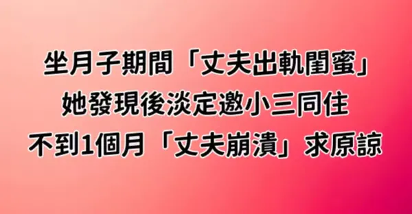 坐月子期間「丈夫出.軌閨蜜」!她發現後淡定邀小三同住 不到1個月「丈夫崩潰...」求原諒