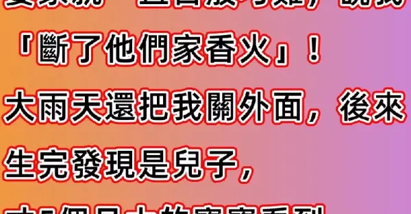 產檢發現是女兒, 婆家就一直百般刁難,說我 「斷了他們家香火」! 大雨天還把我關外面,後來生完發現是兒子, 才5個月大的寶寶看到 「阿嬤就報仇」值得了