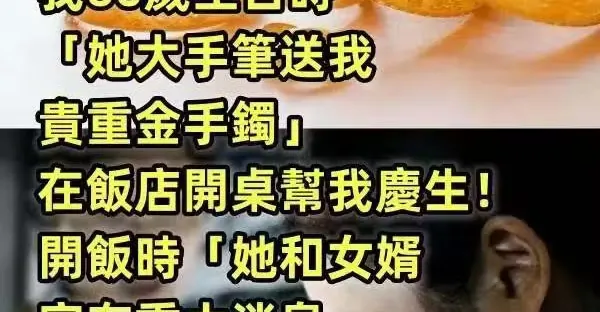 我就一個女兒,她很孝順大家都羨慕我… 我60歲生日時「她大手筆送我貴重金手鐲」在飯店開桌幫我慶生!開飯時「她和女婿宣布重大消息」我卻再也笑不出來:不孝女!