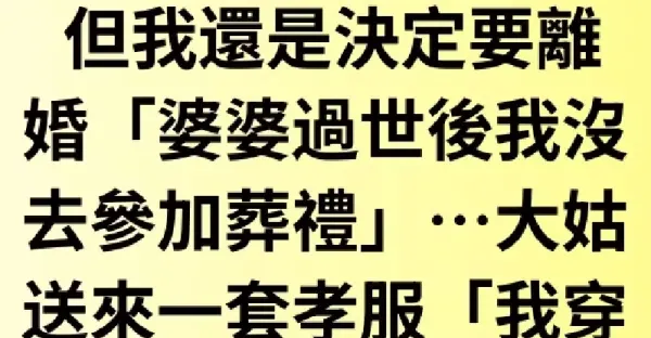 丈夫外遇「婆婆護著我」不肯接受小三! 但我還是決定要離婚「婆婆過世後我沒去參加葬禮」…大姑送來一套孝服「我穿上發現背上怪怪的~」伸手一摸淚崩