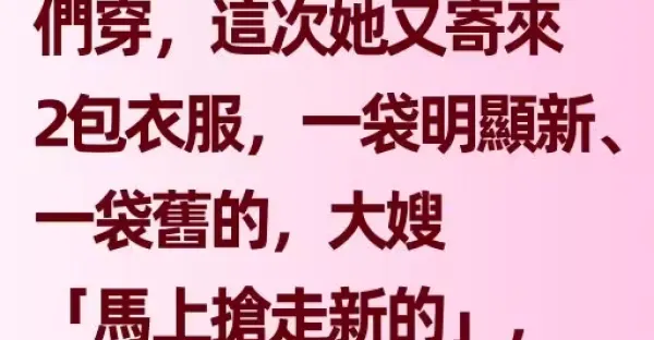 小姑在大公司上班,經常把舊衣服打包給我們穿,這次她又寄來2包衣服,一袋明顯新的、一袋舊的,大嫂「馬上搶走新的」,我只分到舊衣,回家一摸口袋嚇傻打給小姑!