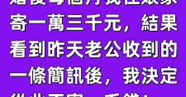 婚後每個月我往娘家寄一萬三千元,結果看到昨天老公收到的一條簡訊後,我決定從此不寄一毛錢~