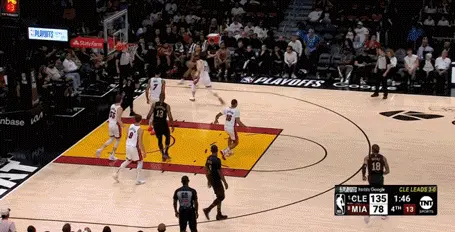 第三節維金斯找回一些手感,單節7投5中砍下12分。但騎士多點開花,分差反而越拉越大。騎士最多領先到49分,鏡頭頻頻給到場邊的萊利和莫寧。NBA季後賽單場最大分差是球迷熟悉的58分,不知道騎士本場能不能打破歷史紀錄?