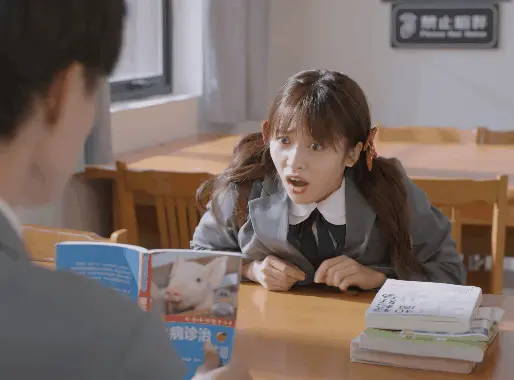 新劇中,她飾演的大學生左千黛一出場就抓住了我的視線,扎著活力四射的雙馬尾,暗戀時躲在柱子後面偷看男神,欣喜又充滿愛意的眼神太甜了。