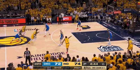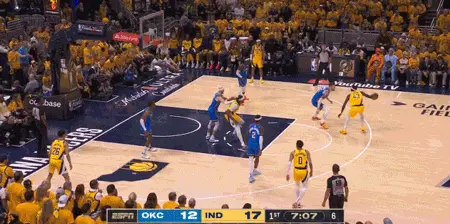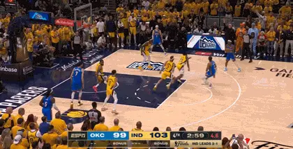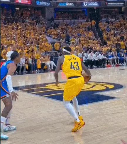 步行者這邊,西亞卡姆14分2板3助4斷、哈利伯頓8分5助3失誤。下半場開始,雷霆三分繼續打鐵,步行者拉開到7分。雷霆這邊基本上是單打獨鬥,沒什麼團隊配合。雷霆一度追到2分,托平連中兩記三分+大帽傑威,點燃步行者主場。