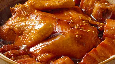 5、砂鍋做法:大火煮沸後,轉小火燉煮2小時至酥爛,再開大火收汁至濃稠,可撒干桂花裝飾。