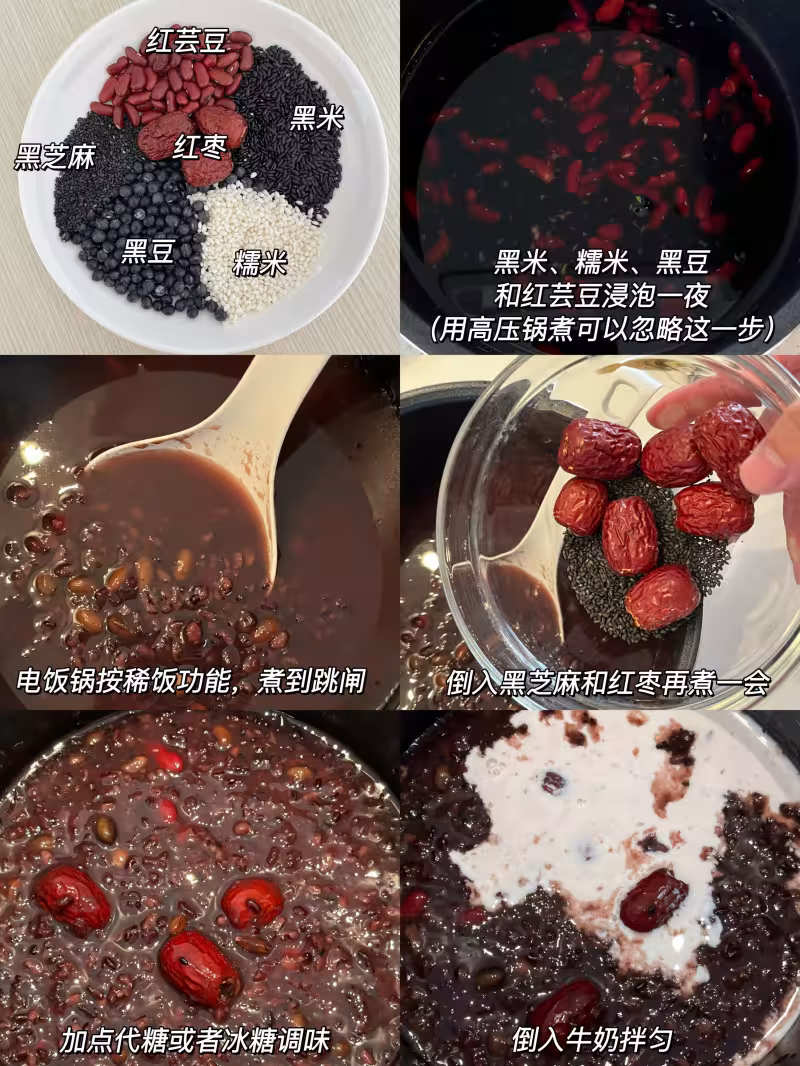 是我老媽喝了十幾年的配方!裡面有黑豆、黑米、黑芝麻等黑色食材,可以黑養黑!