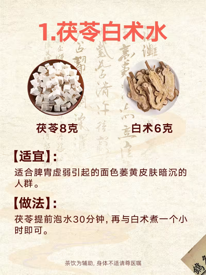 🌱《本草綱目拾遺》記載:茯苓「久服令人面若童顏,白皙悅澤」,可見茯苓在內調美/白方面確實「有一手」,在古代醫籍中就備受推崇,是調養膚色暗黃、追求肌膚透亮的常用💊材~