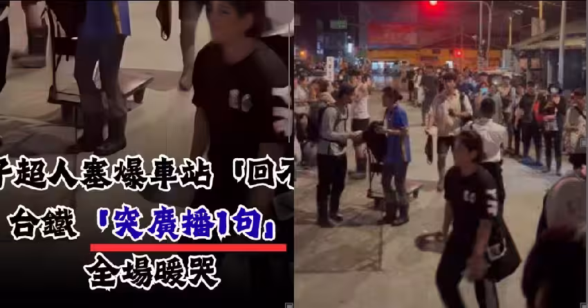這時,有名台鐵員工出來,用大聲公廣播,請大家先上車,到站再做補票的動作就好,現場也爆出一陣歡呼聲。