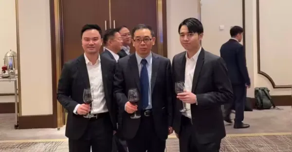 霍啟山出席活動同場何猷亨,倆闊少相談甚歡,何猷亨髮型一絲不苟