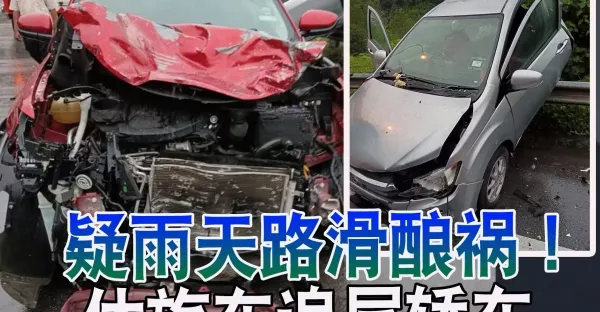 疑雨天路滑釀禍!休旅車追尾轎車 女司機被夾斃!