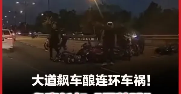 大道飆車釀連環車禍!多輛摩托如「保齡球」集體倒地