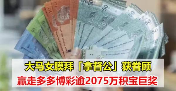 大馬女膜拜「拿督公」獲眷顧,贏走多多博彩逾2075萬積寶巨獎