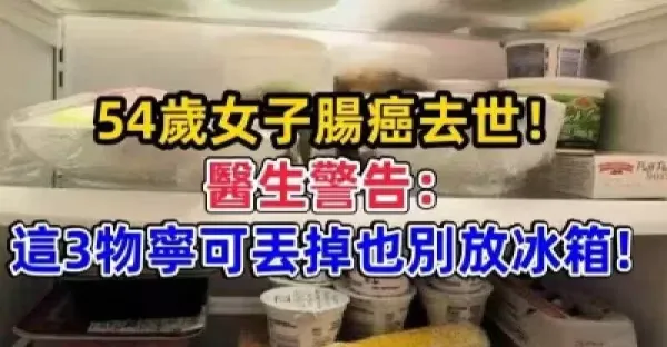 54歲女子腸癌去世!醫生警告:有3物寧可丟掉也別放冰箱!